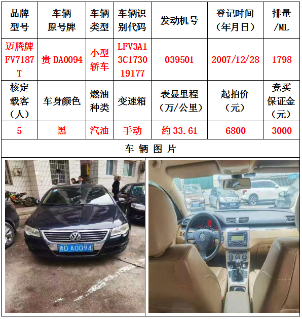 本次拍賣會的拍賣標(biāo)的其中5輛車,分別為邁騰牌FV7187T小型轎車一輛、豐田牌GTM7200GB-NAV1小型轎車一輛、捷達(dá)牌FV7160GiF E3小型轎車一輛、帕薩特牌SVW7203FPi小型轎車一輛、帕薩特牌SVW7203FPi小型轎車一輛,為打包整體拍賣,不作拆分,整體起拍價:42400元,且只對標(biāo)的現(xiàn)狀進(jìn)行拍賣,不作任何質(zhì)量擔(dān)保。