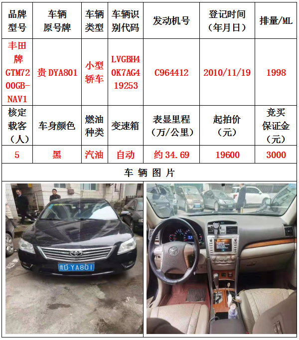 1、機(jī)動車輛5輛(整體拍賣),起拍價:42400元,競買保證金15000元。