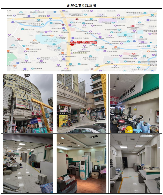 標的位于貴陽市云巖區(qū)香獅路198、196號新里程商城1號樓F1層203號;該標的分攤土地使用權面積:98.51㎡ ,總建筑面積:285.72㎡,樓宇總層數(shù):9層,所在樓層:1層,地類用途:商業(yè)用地;土地使用權類型為出讓,土地使用權終止日期為:2053年10月23日,土地所有權為國家所有;建筑結構:混合結構;層高:3.3米,建筑用途為商住。