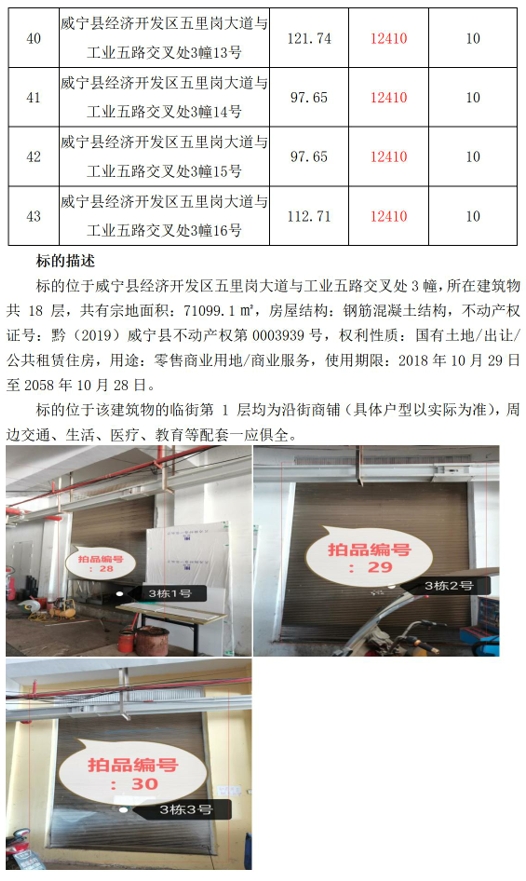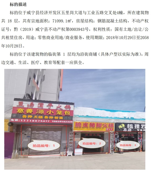 (一)威寧縣經(jīng)濟(jì)開發(fā)區(qū)五里崗大道與工業(yè)五路交叉處公租房4幢沿街商鋪3間,建筑面積:65.44㎡-67.07㎡。