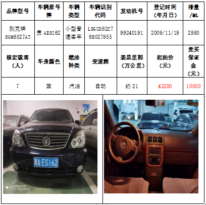 拍品編號(hào)2:別克牌SGM6527AT小型普通客車(chē)一輛