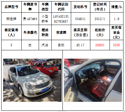 拍品編號(hào)6:朗逸牌小型轎車(chē)