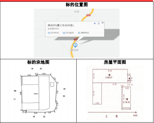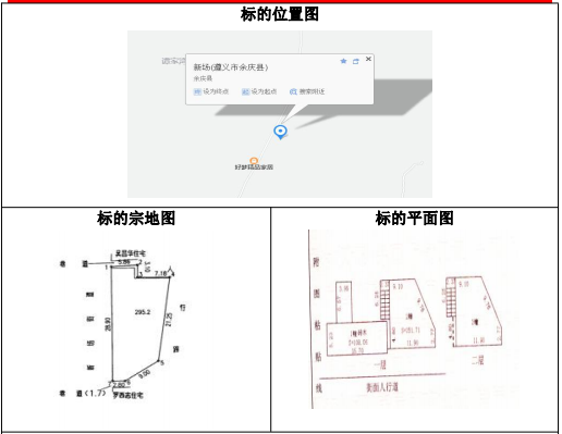 該標(biāo)的位于余慶縣大烏江鎮(zhèn)新場(chǎng)街上,附近居民較多,標(biāo)的以房屋占地為界,土地上有兩幢建筑物,修建于1984年,證載建筑面積:約359.77㎡,幢號(hào)一房屋結(jié)構(gòu)為磚木,房屋總層數(shù)為一層,房產(chǎn)證載設(shè)計(jì)用途為倉庫,幢號(hào)二房屋結(jié)構(gòu)為混合,房屋總層數(shù)為二層,房產(chǎn)證載設(shè)計(jì)用途一層為倉庫,二層為住宅,幢號(hào)一由于年久失修,現(xiàn)已成為危房,房產(chǎn)證號(hào):遵房權(quán)證余慶縣字第30000231號(hào)。