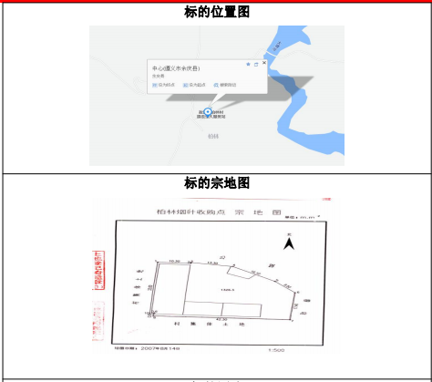 該標(biāo)的位于余慶縣敖溪鎮(zhèn)柏林村村委會(huì)旁,標(biāo)的上無建筑,該標(biāo)的以圍墻為界,標(biāo)的位置在村寨邊緣,證載土地面積:約1326.3㎡,土地使用權(quán)性質(zhì):劃拔,土地證載用途:煙葉收購,土地證號(hào):余國(guó)用(2007)第897號(hào)。