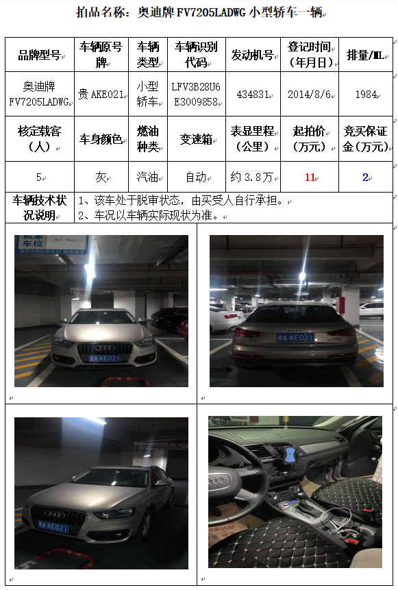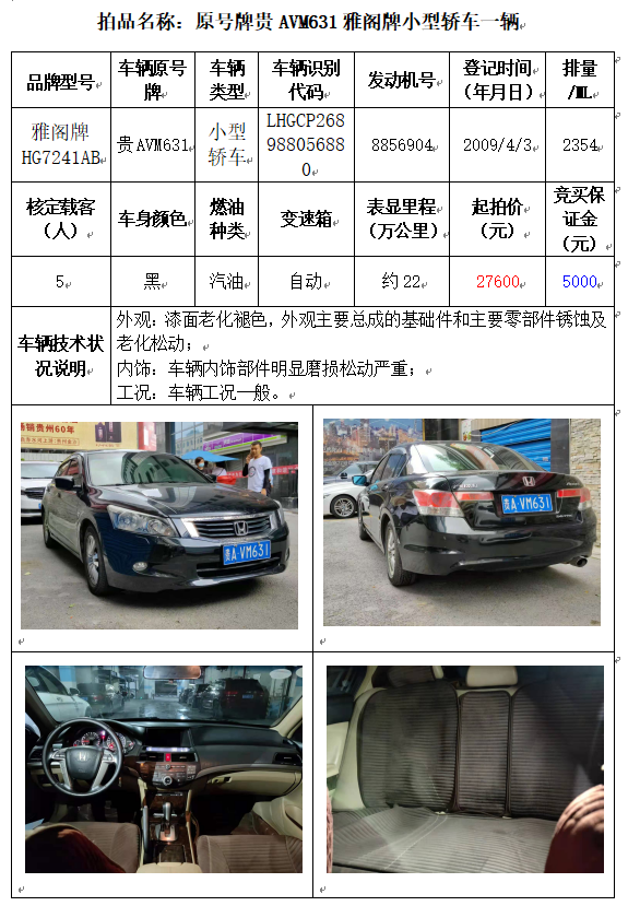受委托,本公司定于2021年10月11日(星期一)下午14:30時(shí),在貴陽(yáng)市中華南路20號(hào)新大陸數(shù)碼廣場(chǎng)10樓D座拍賣(mài)廳公開(kāi)拍賣(mài)以下車(chē)輛:
