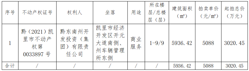 受黔東南州開發(fā)投資(集團)有限責任公司委托,我公司定于2022年01月06日(星期四)下午14:30時在黔東南州公共資源交易中心多功能廳公開拍賣以下標的: